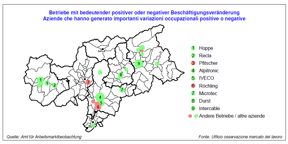 - Mehrere Betriebe in Südtirol verzeichneten bedeutende Beschäftigungsveränderungen. » [IMG 78 kB]