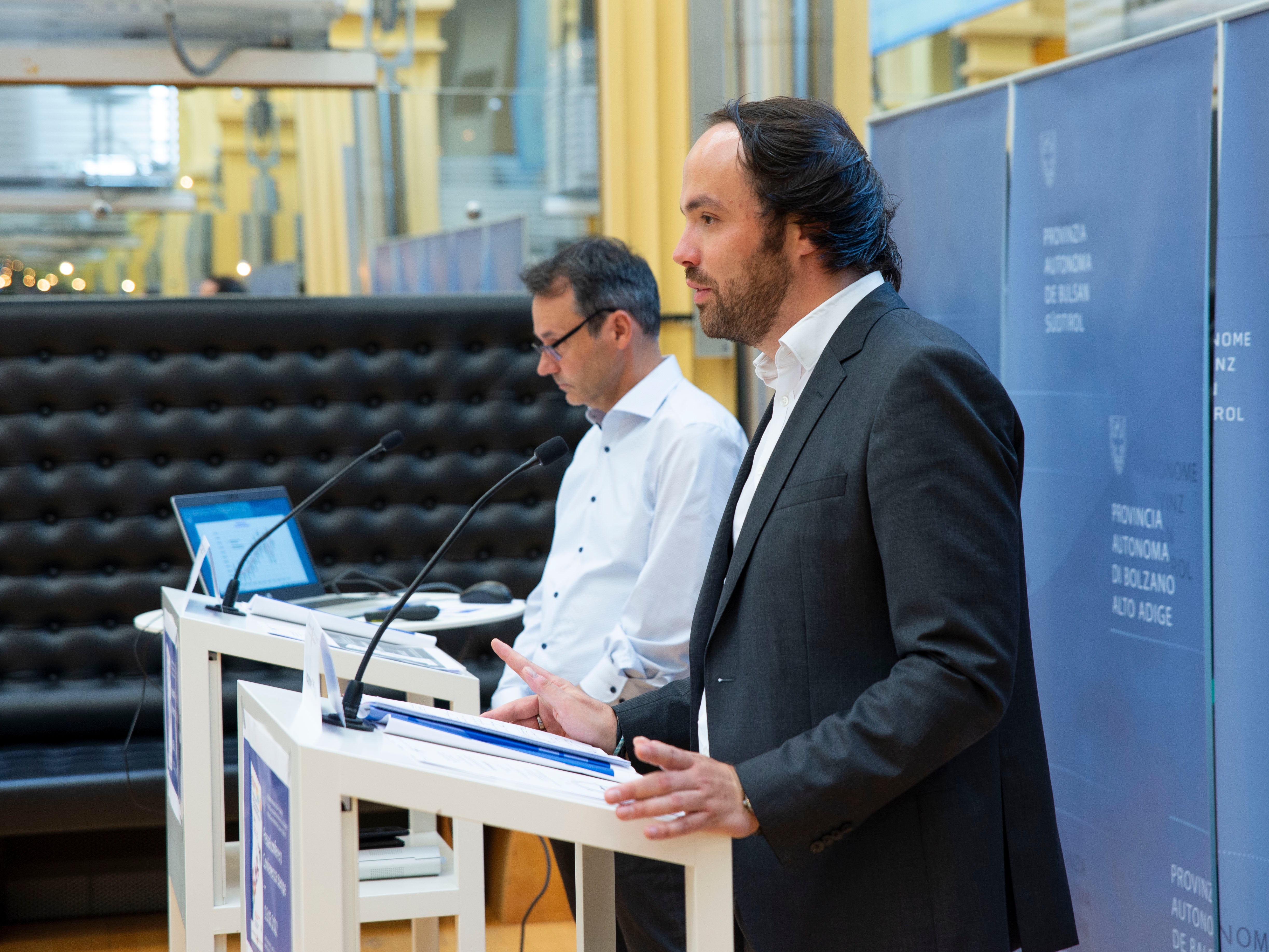 - Landesrat Philipp Achammer und Abteilungsdirektor Stefan Luther haben heute den neuen halbjährlichen Arbeitsmarktbericht vorgestellt. (Foto: LPA/Fabio Brucculeri) » [IMG 2 MB]