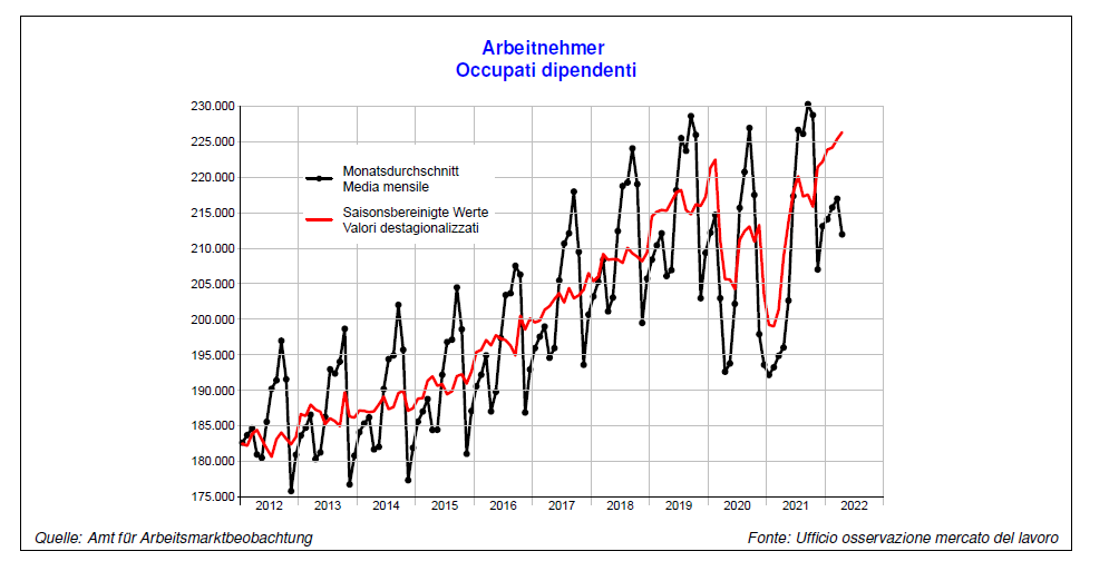 Die Beschäftigung hat das Vor-Corona-Niveau mindestens erreicht, in einigen Branchen übertroffen. Das belegt der Arbeitsmarktbericht November 2021 - April 2022, der in Bozen vorgestellt worden ist.