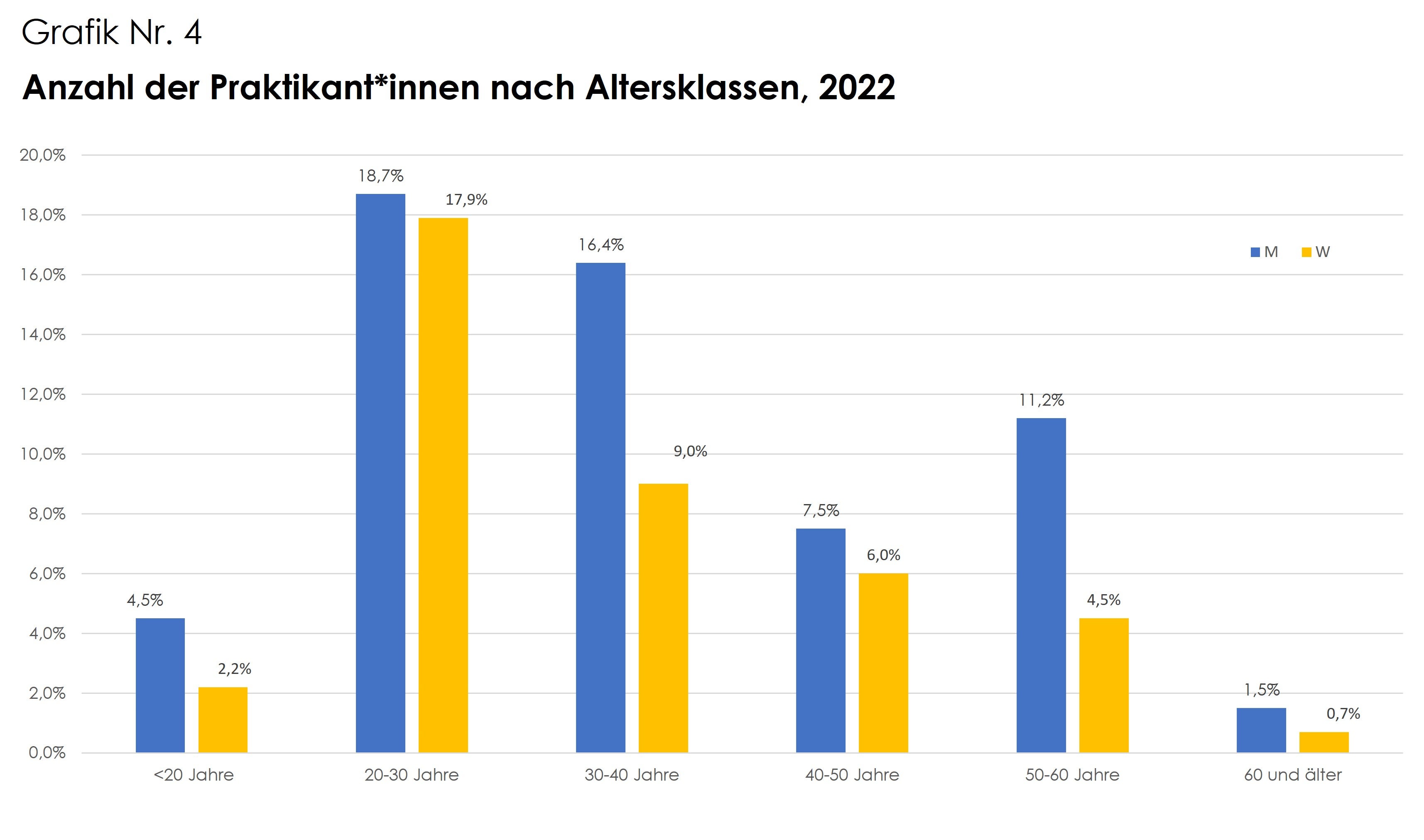 Sechs von zehn Praktikanten sind 20 bis 40 Jahre alt