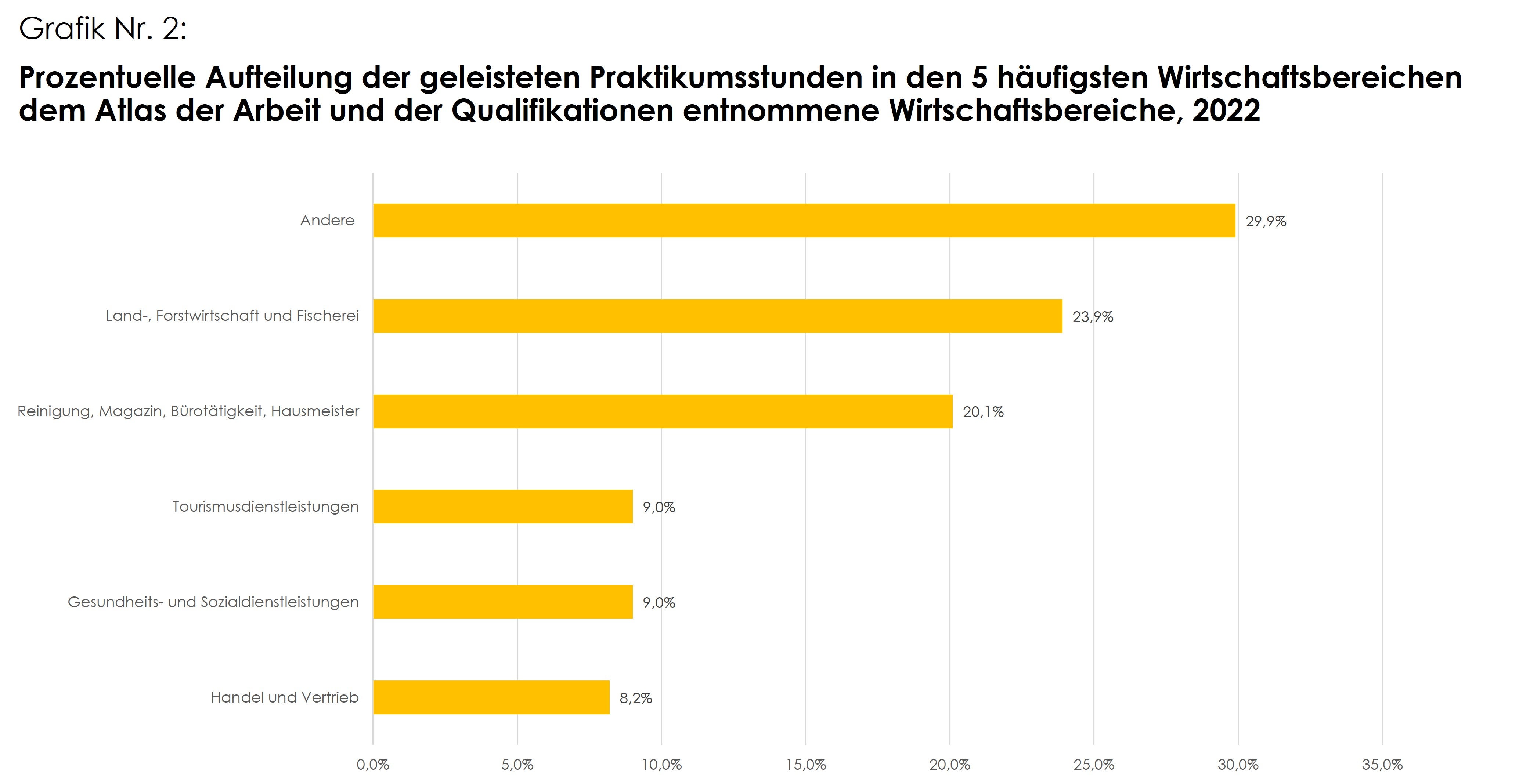 Die Praktikumsplätze werden von vielen Unternehmen, Genossenschaften sowie Einrichtungen, Vereinen und Stiftungen angeboten. Rund ein Drittel davon sind private Betriebe. Was die Wirtschaftssektoren betrifft, sind neben dem allgemeinen Bereich die Land- und Forstwirtschaft und die Fischerei hervorzuheben, wo mit 23,9 Prozent um rund zehn Prozent mehr Praktika als 2021 angeboten und durchgeführt wurden.
