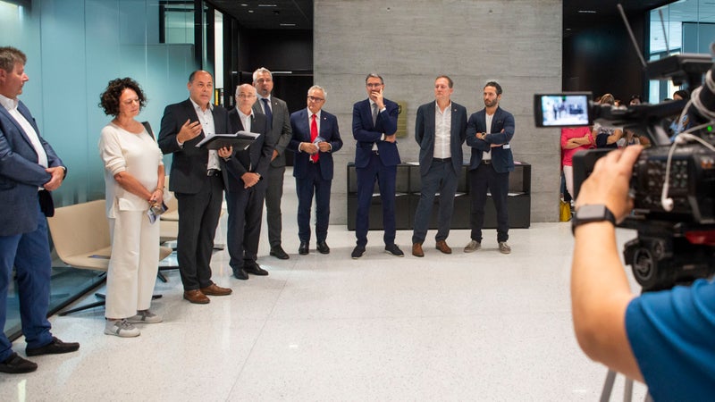 - Einsparung von Mietkosten, angemessene Räume für die Mitarbeitenden und Energieeinsparung seien beim Bau des neuen Landhauses wichtig gewesen, unterstrichen Landeshauptmann Arno Kompatscher (l.) und Landesrat Massimo Bessone (r.) bei der Übergabe. (Foto: LPA/Fabio Brucculeri) » [IMG 2 MB]